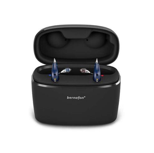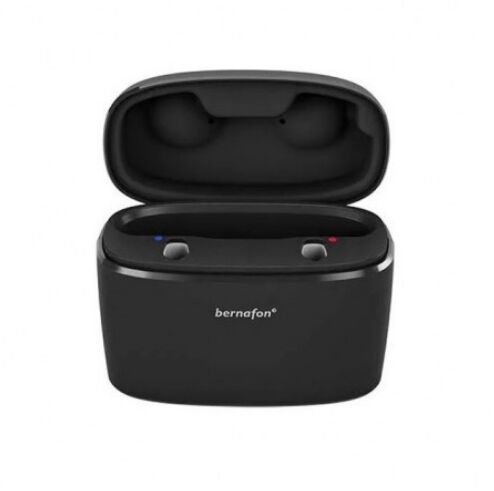 Ładowarka przenośna Bernafon Charger Plus umożliwia wygodne naładowanie aparatów słuchowych modelu Alpha w sytuacjach, gdy nie ma dostępu do sieci elektrycznej. Urządzenie posiada pokrywę, którą można zamknąć, aby zabezpieczyć aparaty słuchowe podczas procesu ładowania. Czas ładowania power banku wynosi 4 godziny.